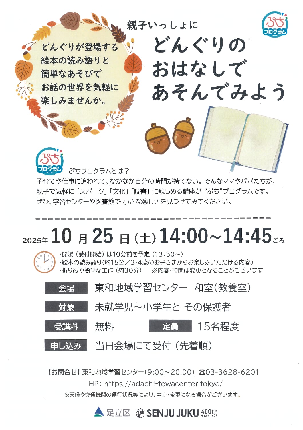 親子いっしょに どんぐりのおはなしであそんでみよう(2025.10月)
