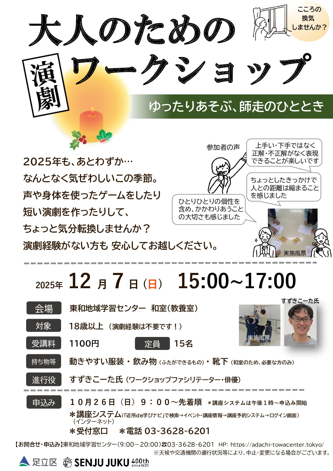 ・天候や交通機関の運行状況により、講座が中止・変更になる場合がございます。