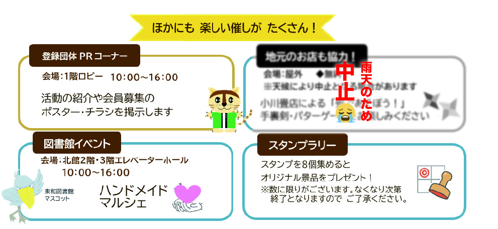 ※小川畳店「畳であそぼう(手裏剣・パターゲーム)」は雨天のため中止となりました